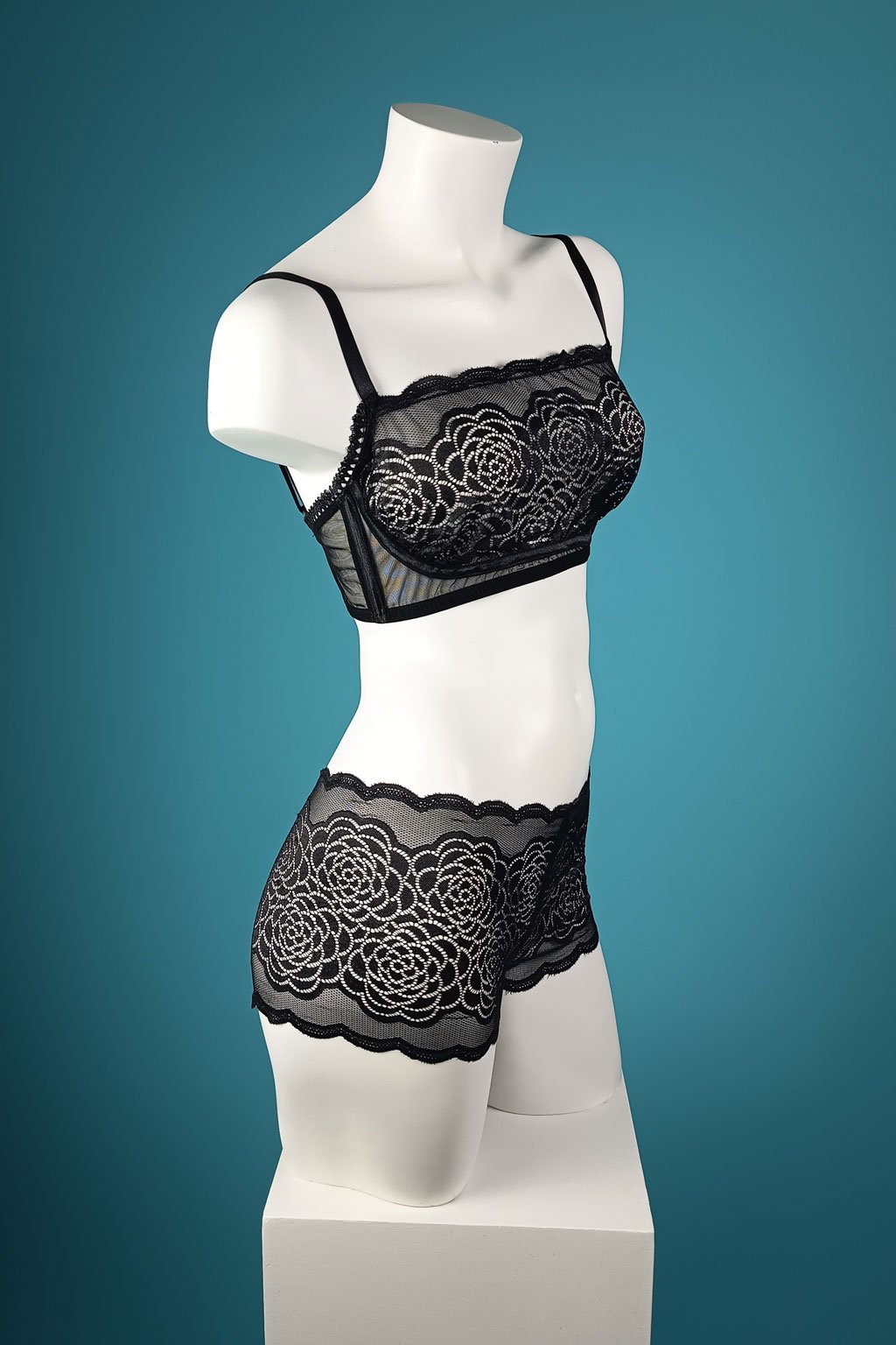 Souprava se skládá z braletky a krajkových kraťásků. Braletka krásně sedí a skvěle funguje i prakticky: když máte šaty nebo top s až moc odvážným výstřihem, stačí ji nechat lehce vykouknout a dekolt rázem vypadá stylově, ne „příliš“. Kraťásky dodají pohodlí a zároveň ten správný detail, který dělá z obyčejného dne něco o dost zajímavějšího.