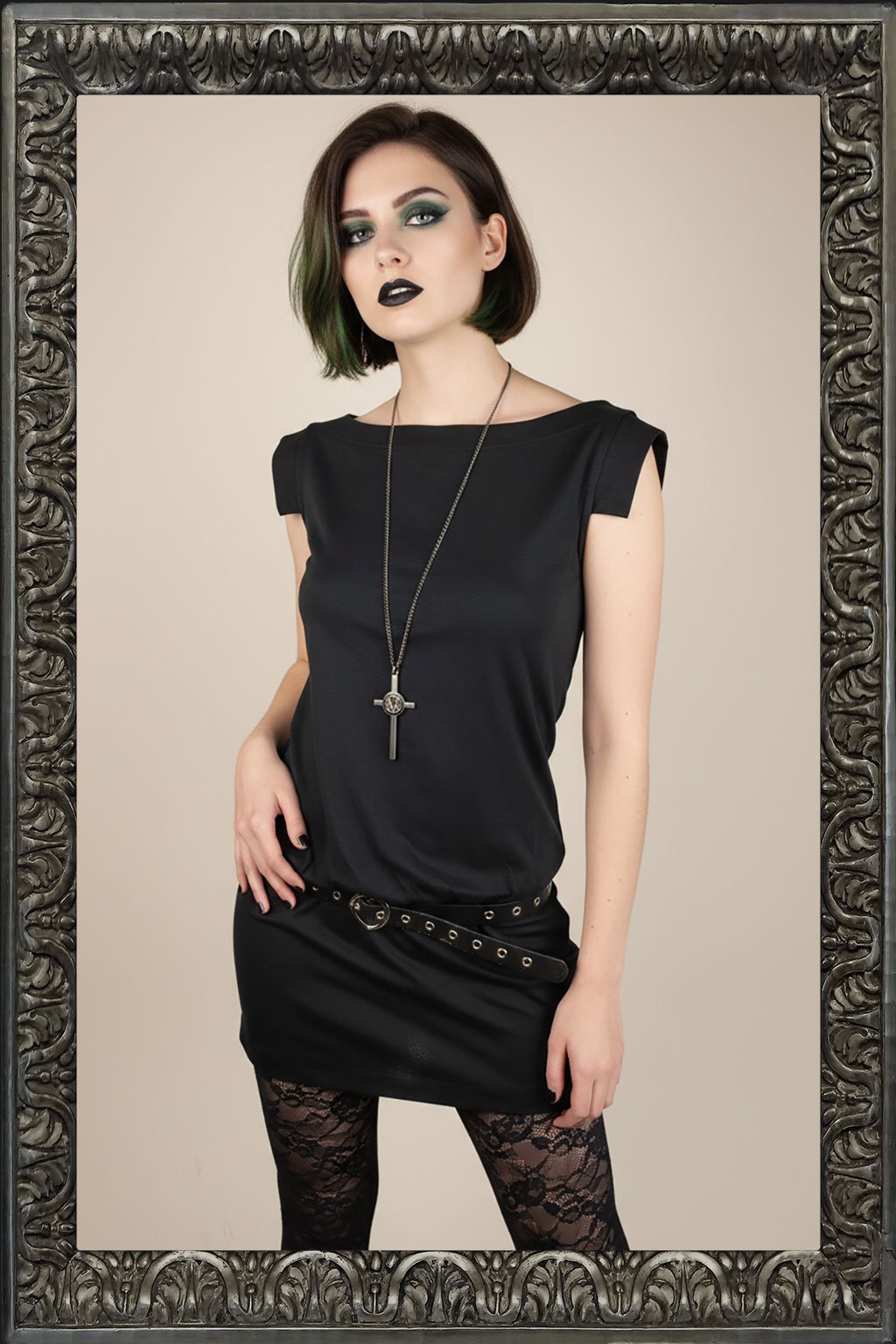 Představujeme černou bavlněnou tuniku, která je ideálním doplňkem pro váš každodenní šatník. Tato tunika má délku pod zadek a malé rozparky po stranách, což zajišťuje pohodlné a stylové nošení. Na bocích je stažená měkkou gumou, která vytváří jemné nařasení a přizpůsobuje se vaší postavě. Lodičkový výstřih dodává tunice elegantní vzhled, zatímco mírně rozšířená ramena přidávají na modernosti.