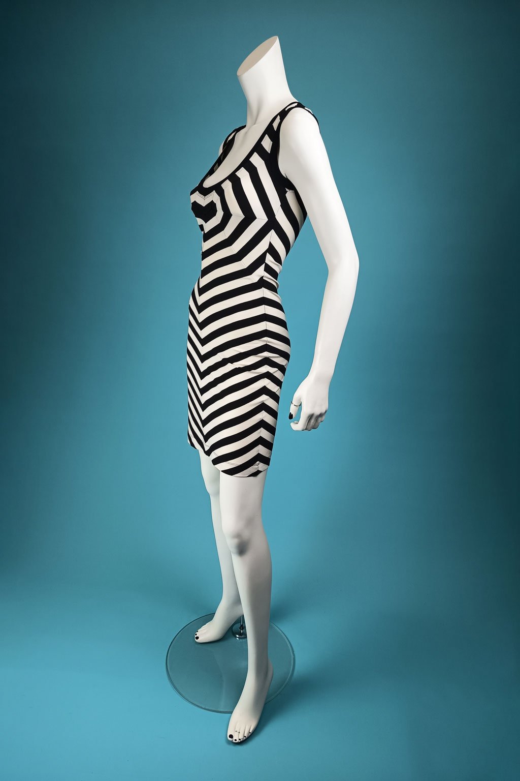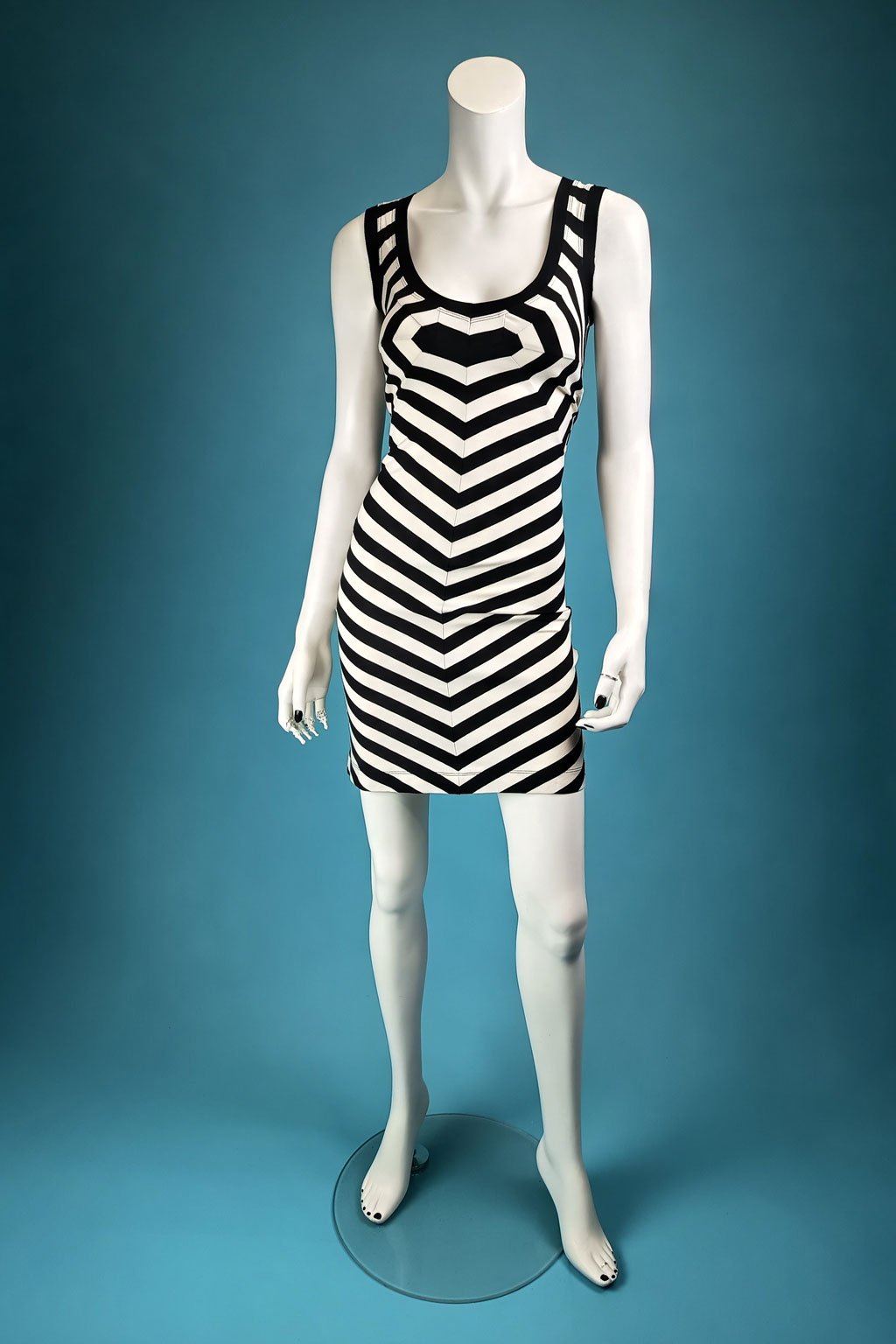 Díky sesazení proužků vzniká optický klam, který dokáže zakrýt všechny Vaše nedokonalosti. Tyto šaty jsou ideální pro upoutání pozornosti do dekoltu, který rozhodně nikdo nepřehlédne. Zato si určitě nevšimne ostatních částí těla.