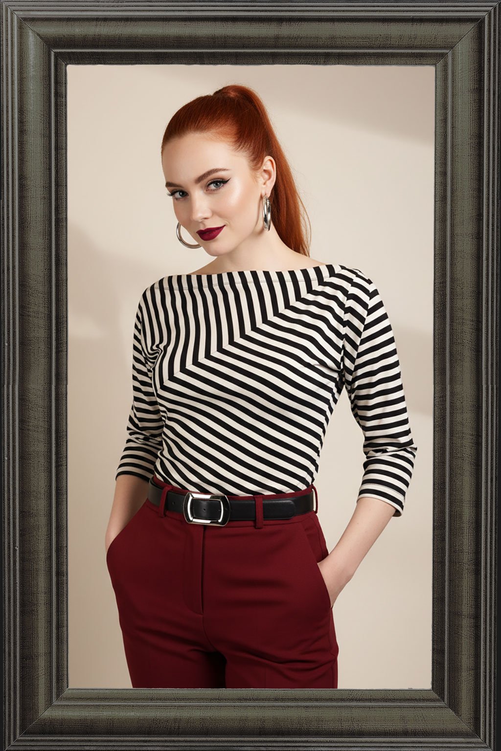 Toto pruhované triko s lodičkovým výstřihem a netopýřími rukávy je skvělou volbou pro každou ženu, která chce vypadat stylově a cítit se pohodlně. Nechte se okouzlit jeho jedinečným designem a přidejte do svého šatníku kousek, který vás nikdy nezklame!