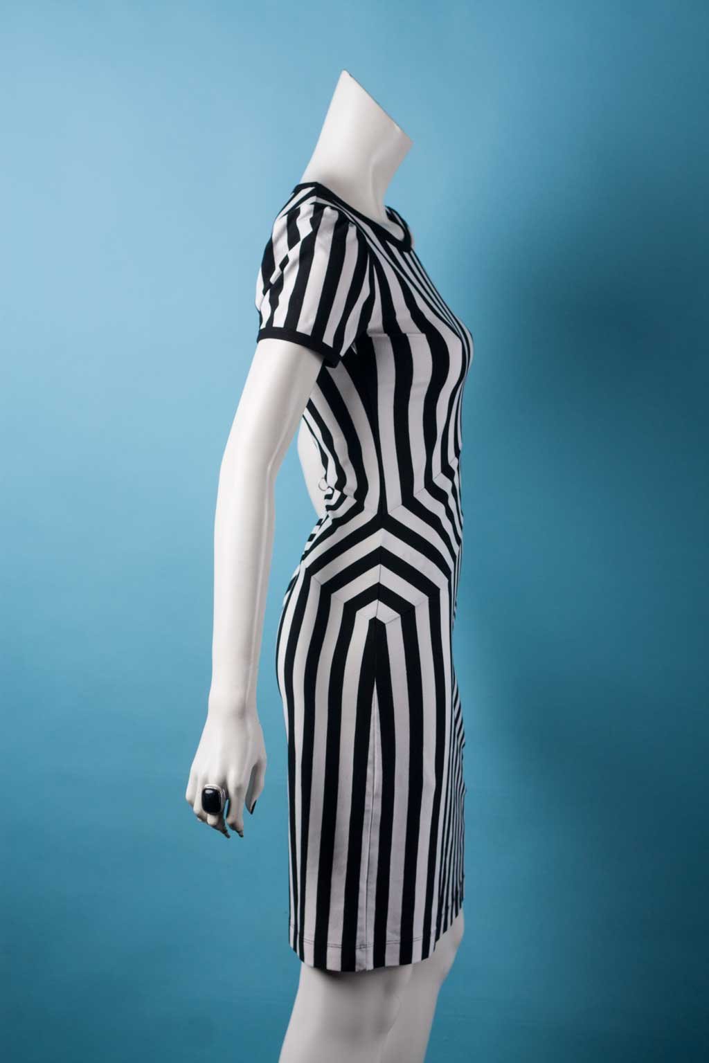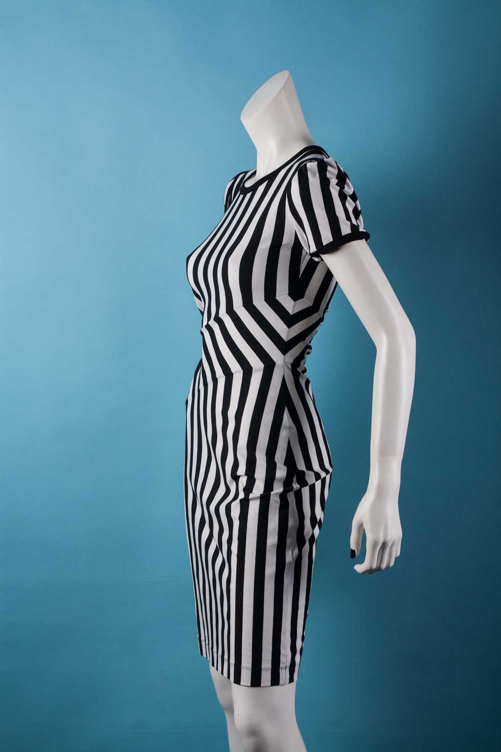 Představujeme elegantní pouzdrové šaty, které zaujmou svým jedinečným designem. Tyto šaty jsou zdobené lomeným výrazným pruhem, který dodává modelu moderní a sofistikovaný vzhled. Krátké balonové rukávy přinášejí jemný nádech romantiky, zatímco kvalitní elastický materiál zajišťuje pohodlí a perfektní přizpůsobení postavě. Každý kousek je pečlivě zpracován ručně, což zaručuje vysokou kvalitu a jedinečnost. Ideální volba pro každou ženu, která chce vyniknout a cítit se sebevědomě při každé příležitosti.
