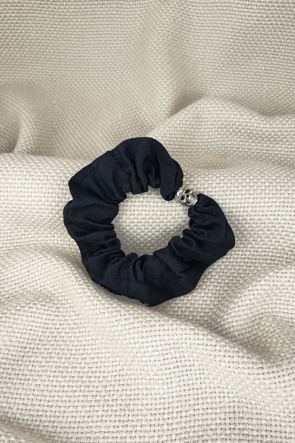 Dodejte svému účesu eleganci v drobném detailu. Ručně šitá gumička do vlasů z jemného černého materiálu zdobená kovovým korálkem je stylovým doplňkem, který působí nenápadně, a přesto zaujme.