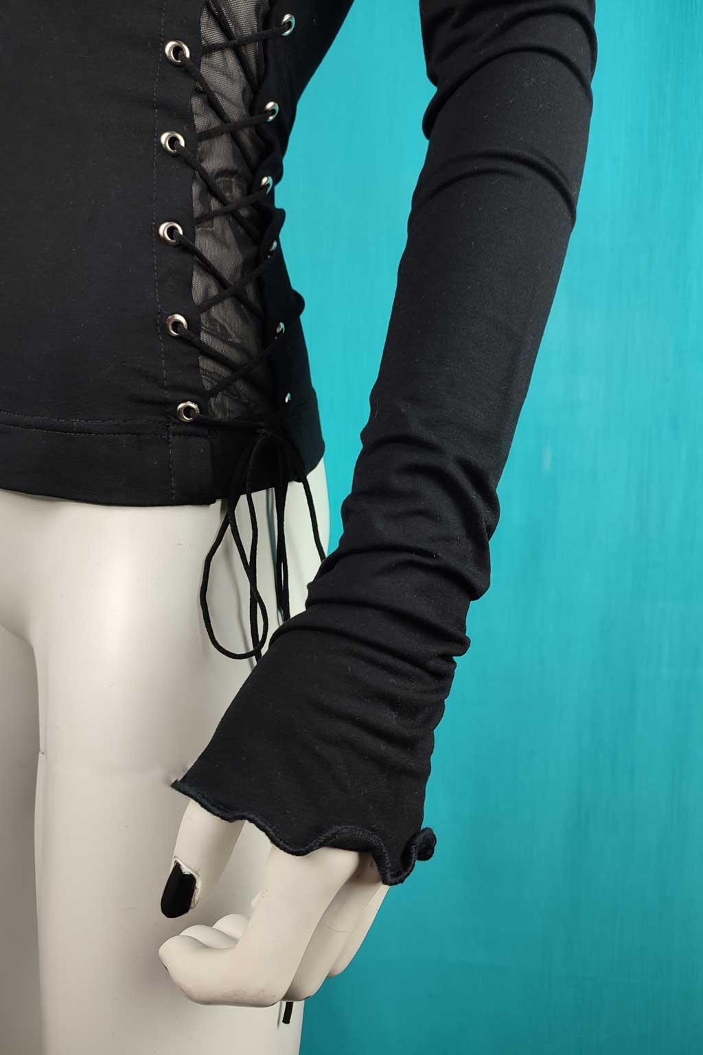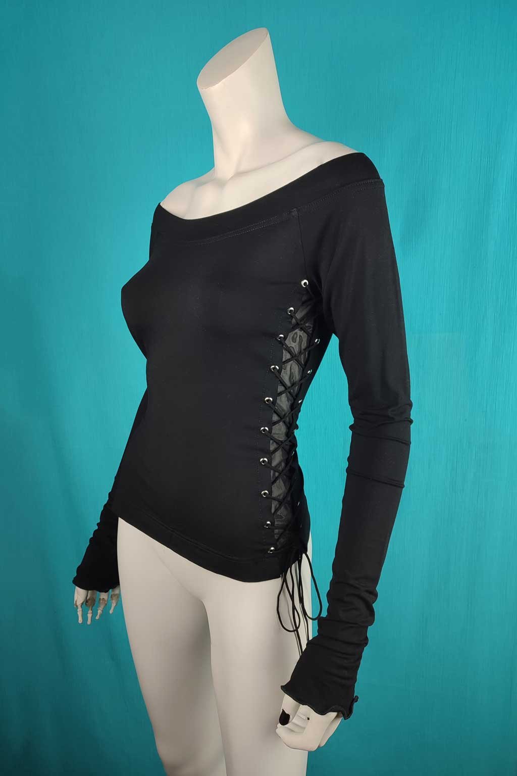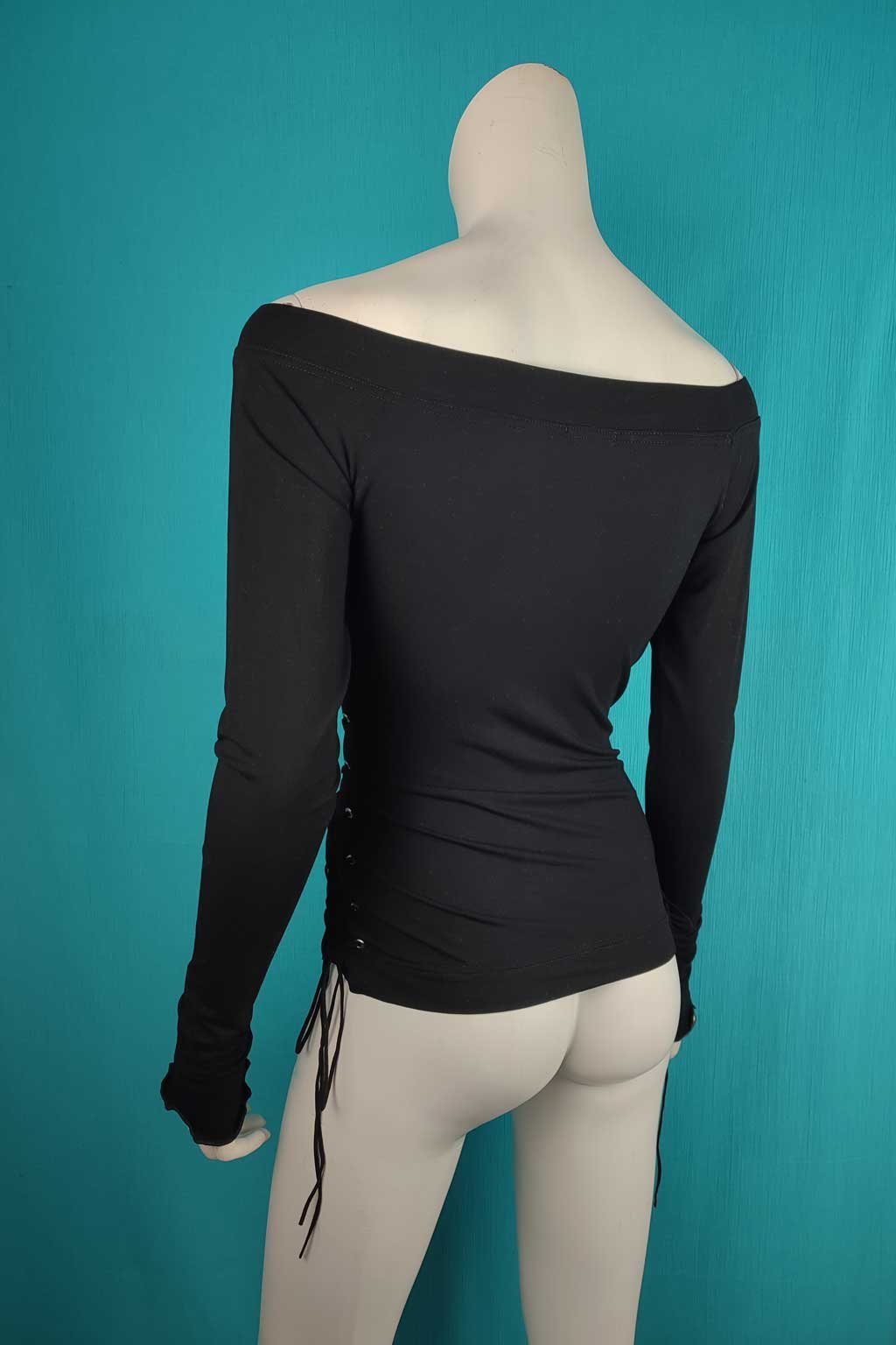 Odhalené ramena dodávají celkovému vzhledu nádech smyslnosti a elegance. Ozdobné šněrování po stranách přidává k triku punc originality a modernosti, vytváří zajímavý kontrast k ostatním kouskům ve tvém šatníku. Prodloužené rukávy zase dodávají halence graciózní a sofistikovaný vzhled.