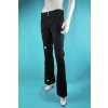 Černé bokové kalhoty s ozdobě obšitými průstřihy na jedné nohavici. Mají přední kapsy a zadním díle je sedlo. Vyrábíme je z mírně elastického lehčího plátna.