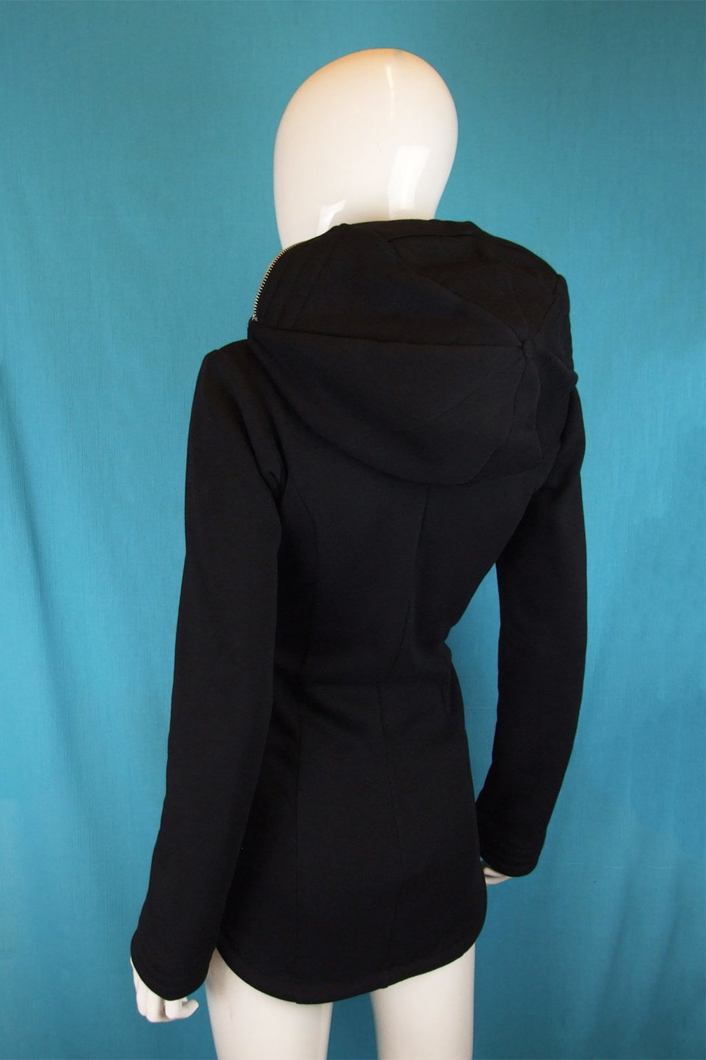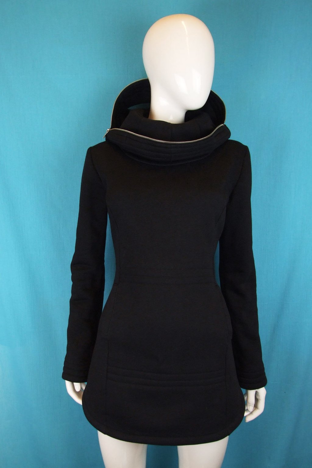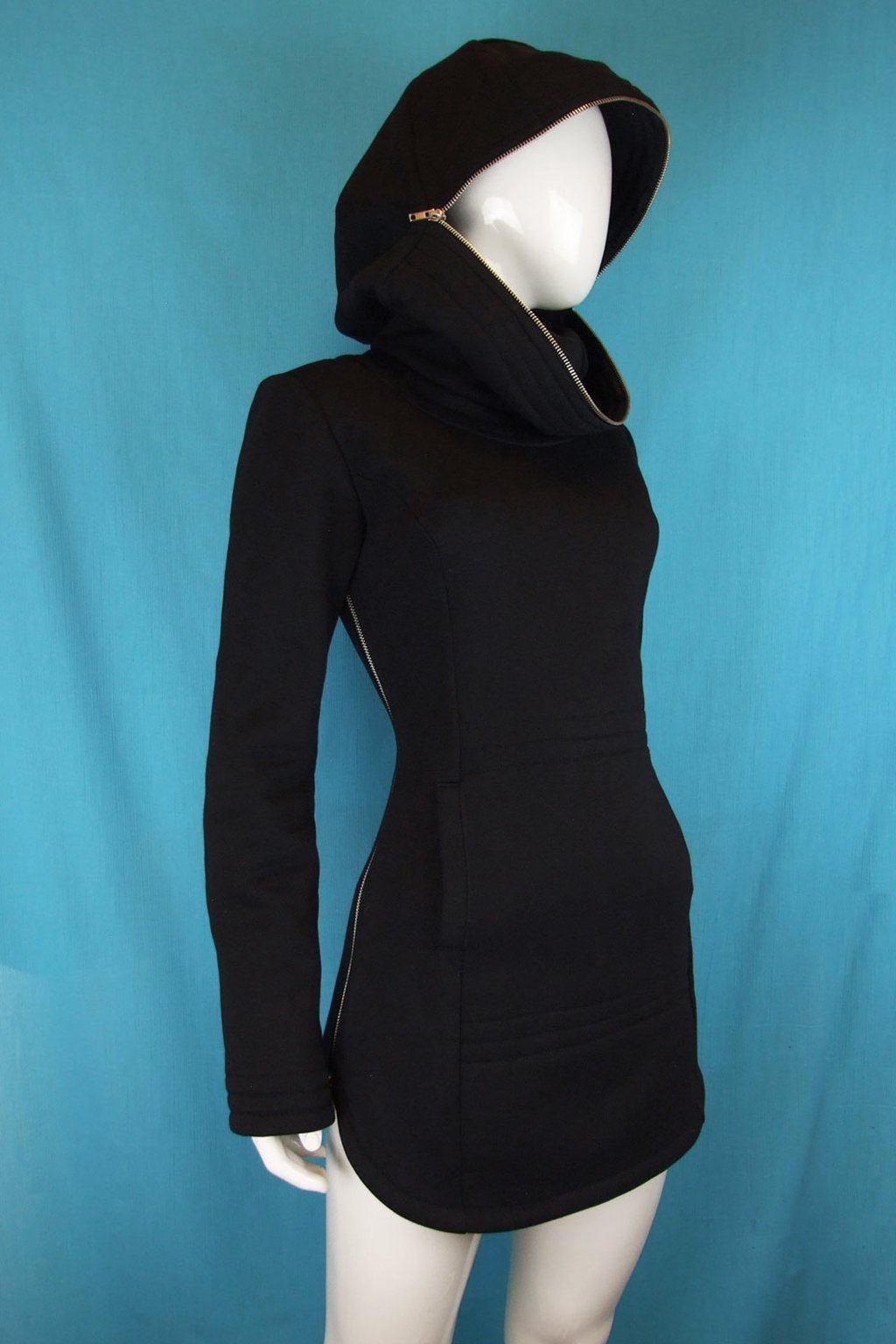 Tato delší černá mikina s unikátní zakuklenou kapucí Alien je ideální volbou pro ty, kteří hledají něco neobvyklého. Mikina má projmutý střih, který perfektně sedí na postavě, a je navržena tak, aby se snadno přetahovala přes hlavu díky zipům umístěným na bocích. Kapuce Alien je navíc vybavena transparentní vsadkou v místě očí, což umožňuje její kompletní zapnutí, aniž byste ztratili přehled o okolí. Vyrobená z velmi kvalitní hřejivé silnější mikinoviny, poskytuje teplo a komfort i v chladnějších dnech.