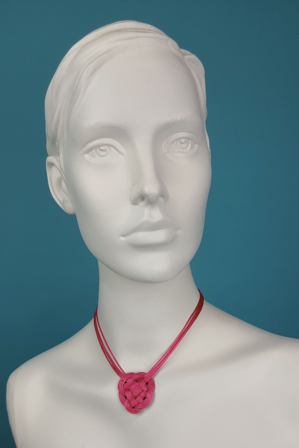 Výrazný detail, který promění celý outfit. Náhrdelník s velkým ručně vázaným uzlem z různobarevných lesklých provázků přitahuje pozornost a dodává stylu originalitu i šmrnc. Je ideální pro ženy, které se nebojí doplňků s nápadem a chtějí vyniknout elegantním, ale neotřelým způsobem.