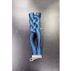 Elegantní náramek s ručně vázaným uzlem v barevné kombinaci královsky modré a černé. Náramek je zapínaný na háček a řetízek stříbrné barvy a díky tomu se snadno přizpůsobí každému zápěstí. Vyrobené pouze 2 kusy.