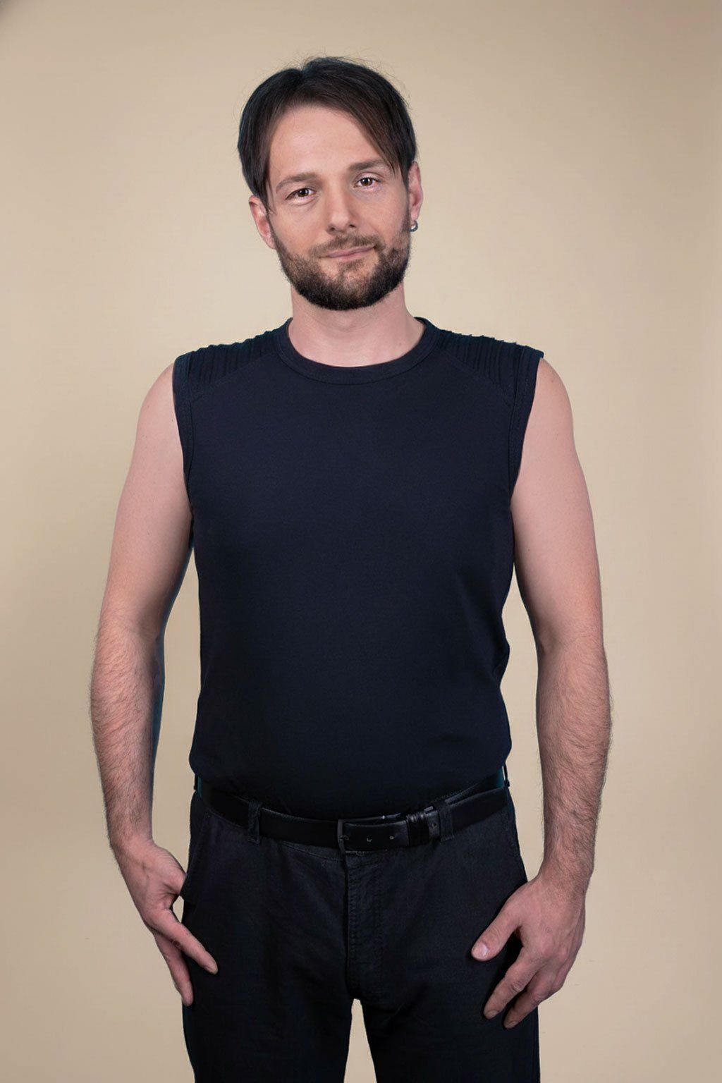 Elegantní a minimalistické pánské triko bez rukávů v černé barvě je navrženo tak, aby podtrhlo mužskou postavu a nabídlo maximální pohodlí. Ramena jsou zdobená jemnými sámky, které dodávají modelu originální detail a lehce gotický nádech.