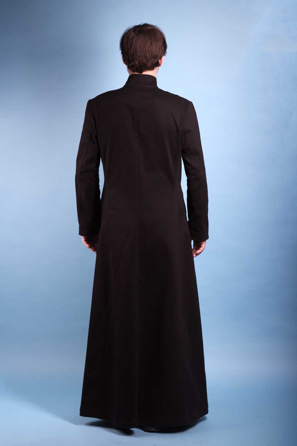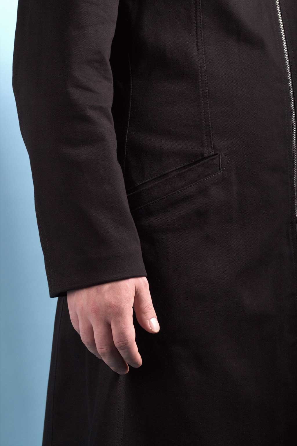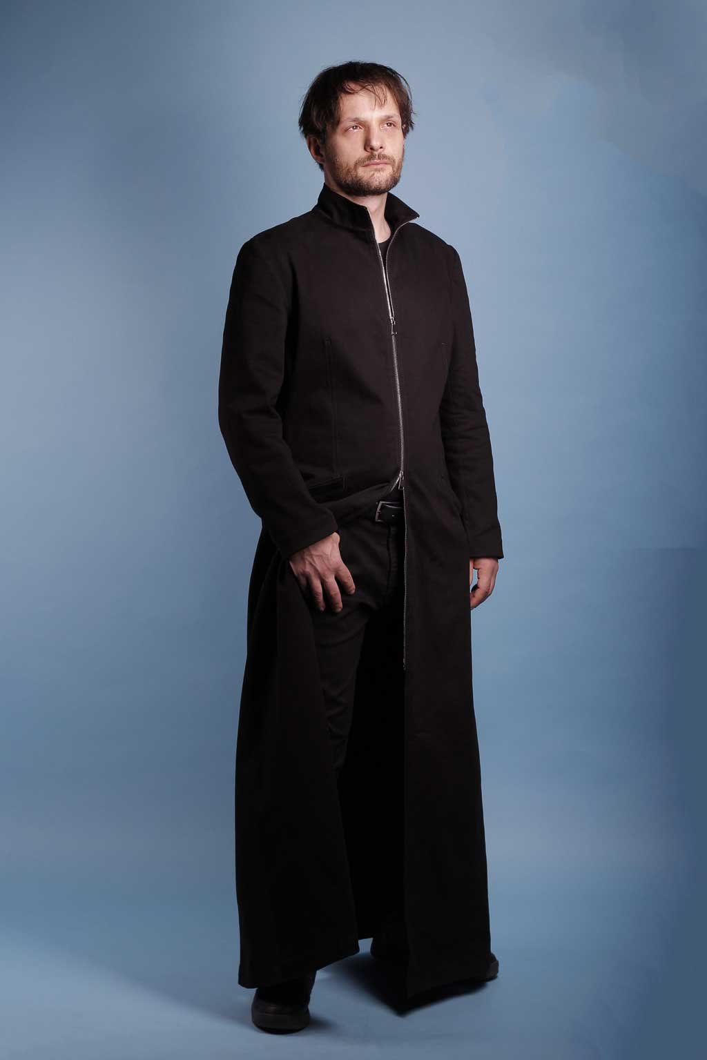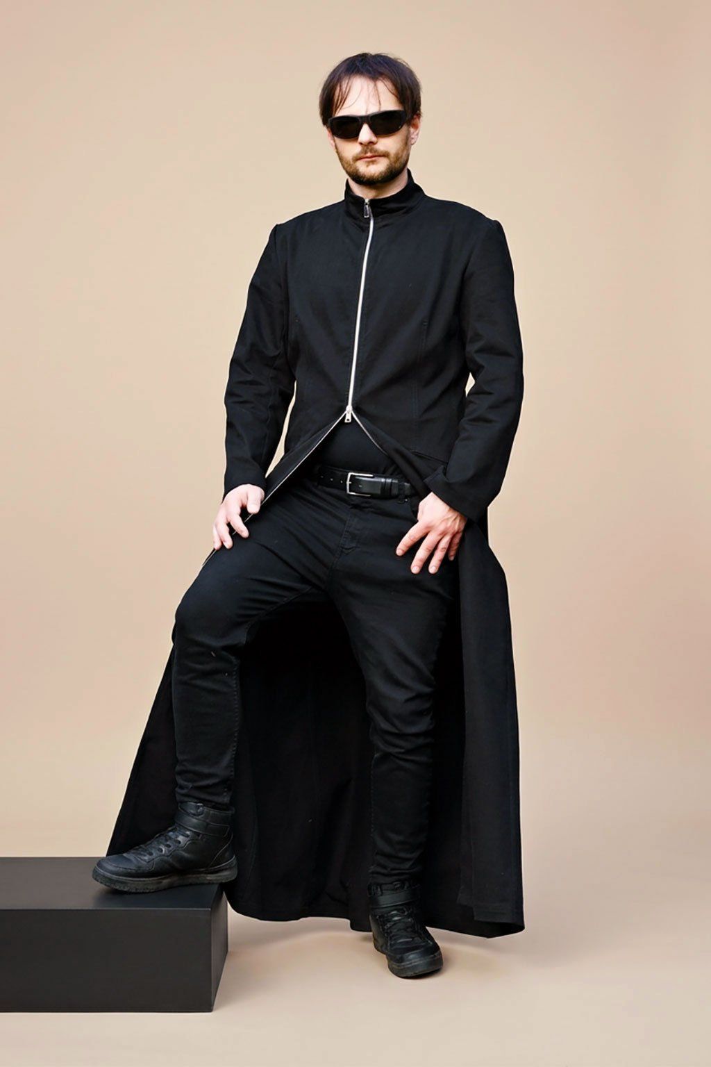 Tento ručně šitý dlouhý pánský černý kabát se stojáčkem je skvělým doplňkem do každého šatníku. Kombinuje praktické prvky s moderním designem, což z něj činí univerzální kousek, který se hodí pro různé příležitosti. Nechte se okouzlit jeho elegancí a kvalitou, a přidejte si do své garderoby kousek, který nikdy nevyjde z módy.