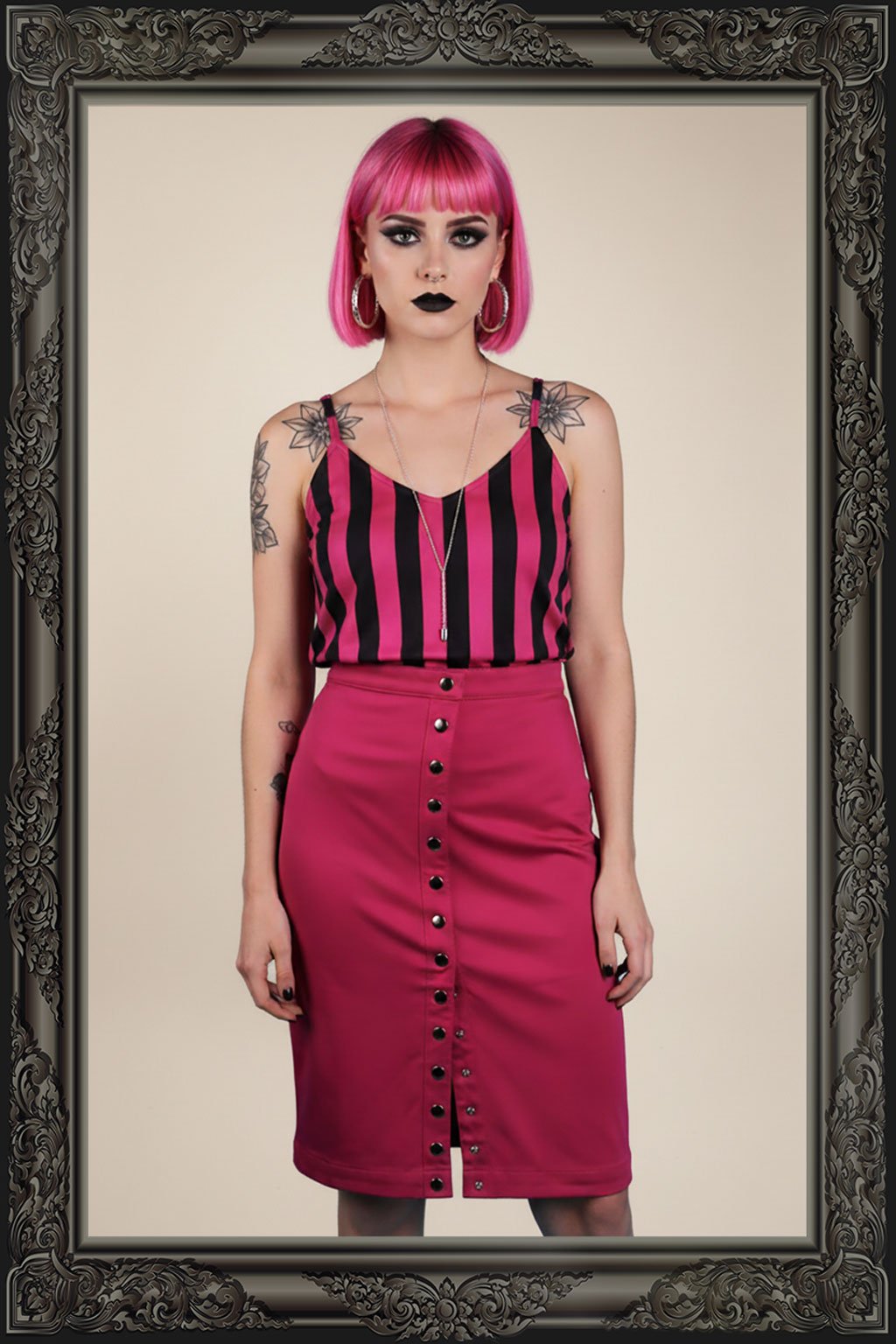 Propínací sukně střihu Lora je skvělý kousek oblečení, který spojuje pohodlí s praktickým propínacím designem.
