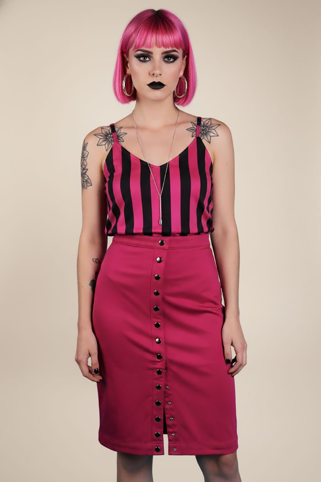 Propínací sukně je skvělý kousek oblečení, který spojuje pohodlí s praktickým propínacím designem. Tato sukně se zapíná na řadu patentů po celé délce, což umožňuje snadné oblékání a svlékání a zároveň umožňuje nastavit výšku rozparku podle vašich preferencí. Propínací sukně je skvělá pro každodenní nošení a snadno se kombinuje do různých outfitů.