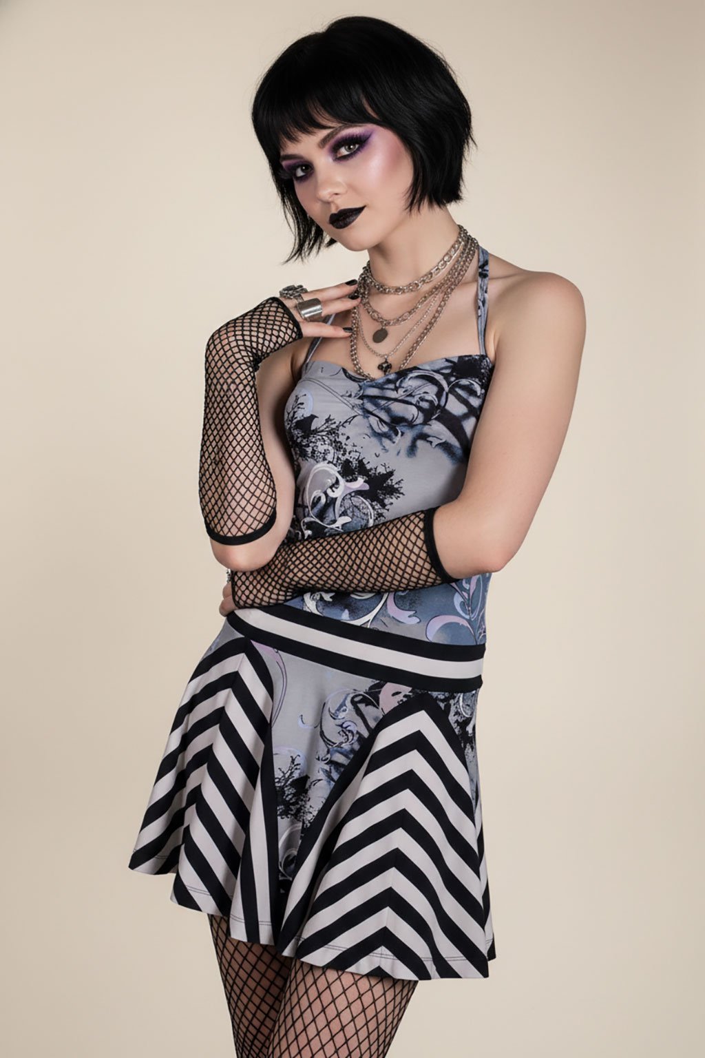 Šaty mají ramínka, která poskytují pohodlný a lehký střih, což je ideální pro letní období. Kolová sukně přináší do designu šatů vzdušnost a ženskost, zatímco pruhovaný materiál dodává celkovému vzhledu hravost a svěžest.