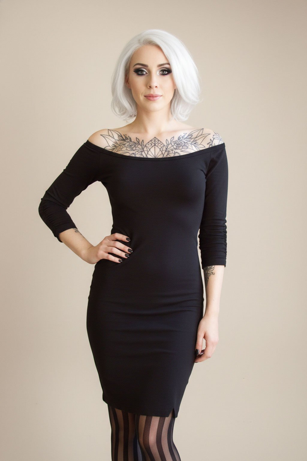 Elegantní šaty s praktickým přístupem. Pouzdrové šaty s rozparkem v zadním díle, výška rozparku je nastavitelná ozdobným kovovým zipem. Je jen na vás jak vysoký bude.