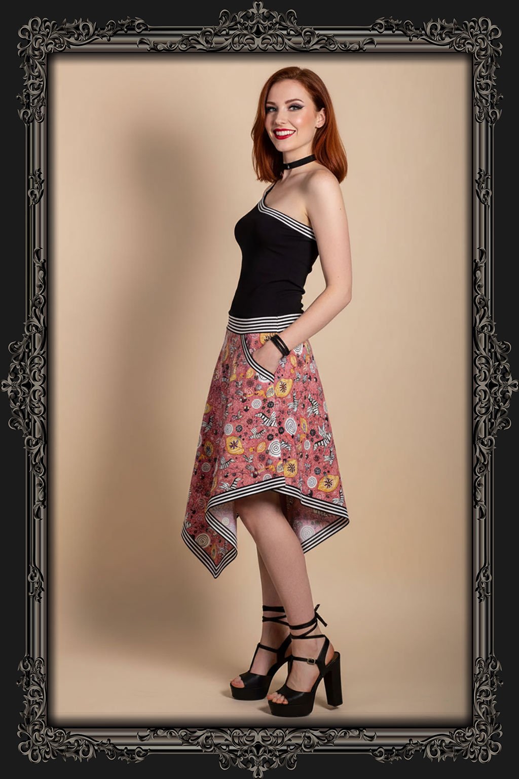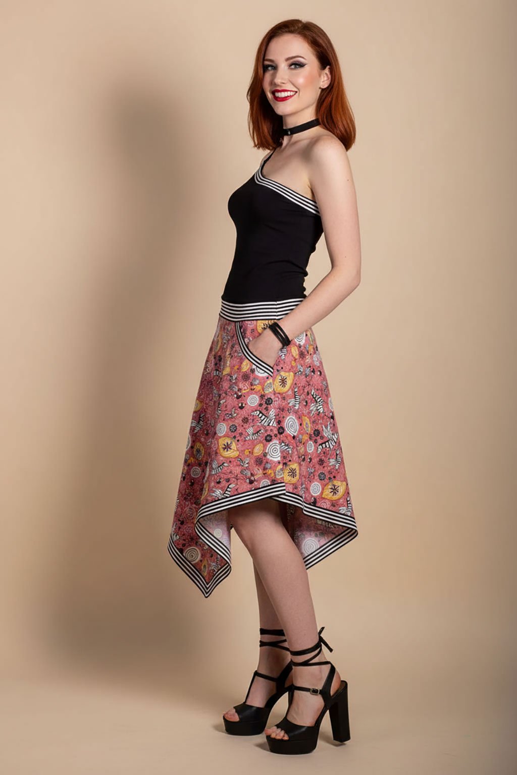 Představujeme vám asymetrické šaty na jedno ramínko s unikátním designem. Tyto šaty jsou charakterizovány rozšířenou sukní, která má kapsy a v dolním okraji se zužuje do cípu, což vytváří moderní a zajímavý vzhled. V této barevné kombinaci jsou vyrobené pouze dvoje šaty ve velikosti S a M