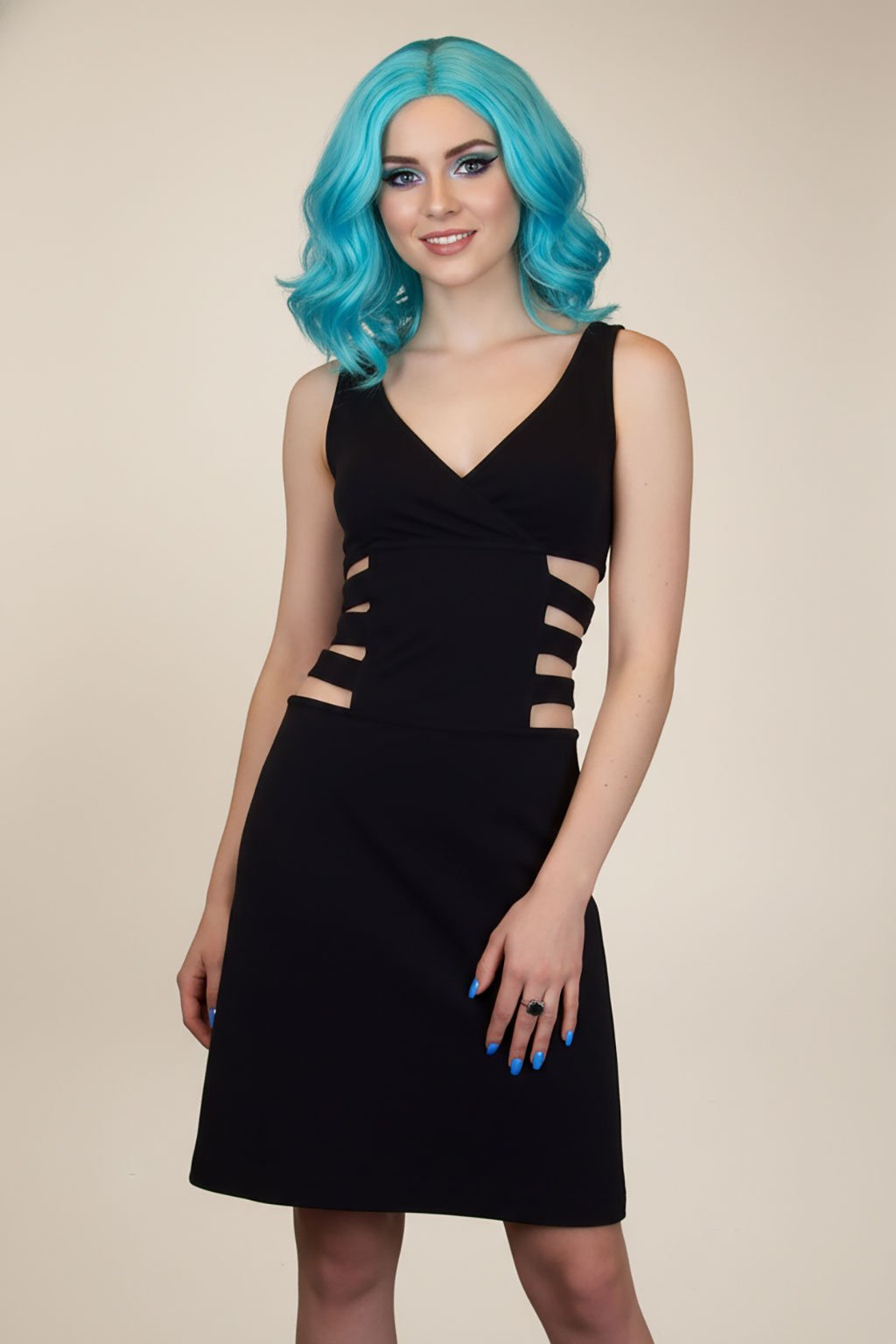 Elegantní černé šaty s rafinovanými průstřihy živůtku.