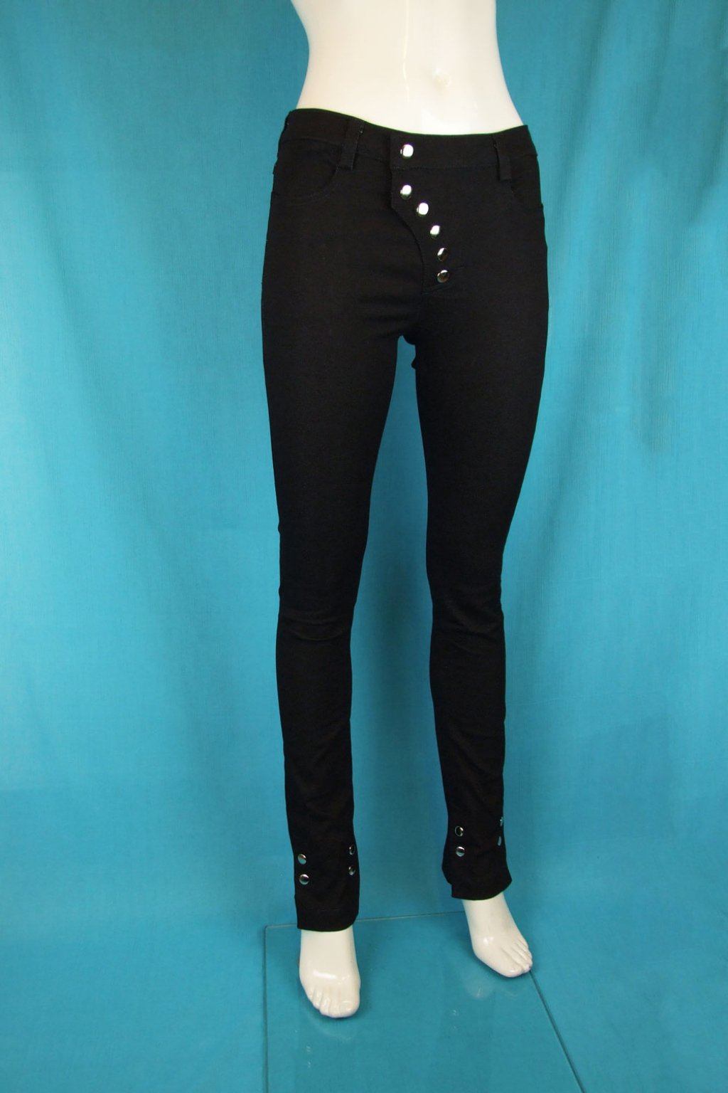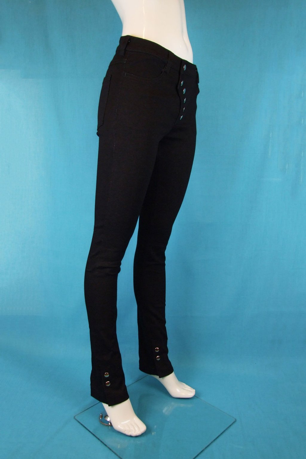 Tyto černé elastické slim kalhoty představují dokonalou kombinaci stylu a pohodlí. Vyznačují se šikmým zapínáním na řadu stříbrných druků, které dodávají kalhotám moderní a elegantní vzhled. Vyrobeny z kvalitní a velmi pružné rifloviny, která zajišťuje maximální pohodlí při nošení. Kalhoty jsou dostupné ve dvou variantách: v dlouhé verzi s rozparky nebo v 7/8 délce, což umožňuje přizpůsobit je vašim preferencím a potřebám.
