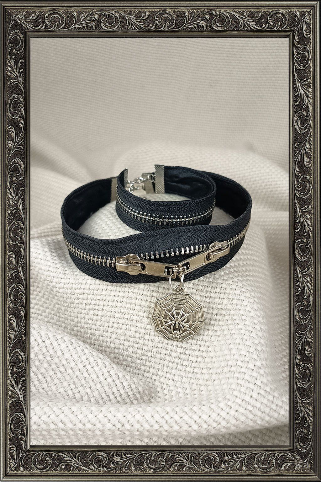 Ručně vyrobená souprava chokeru a náramku z černého kovového zipu je originální doplněk pro všechny, kdo mají rádi neotřelý styl a výrazné detaily. Černý zip v kombinaci se stříbrnými prvky vytváří osobitý vzhled, který zaujme na první pohled a skvěle doplní alternativní, moderní i odvážně laděné outfity.