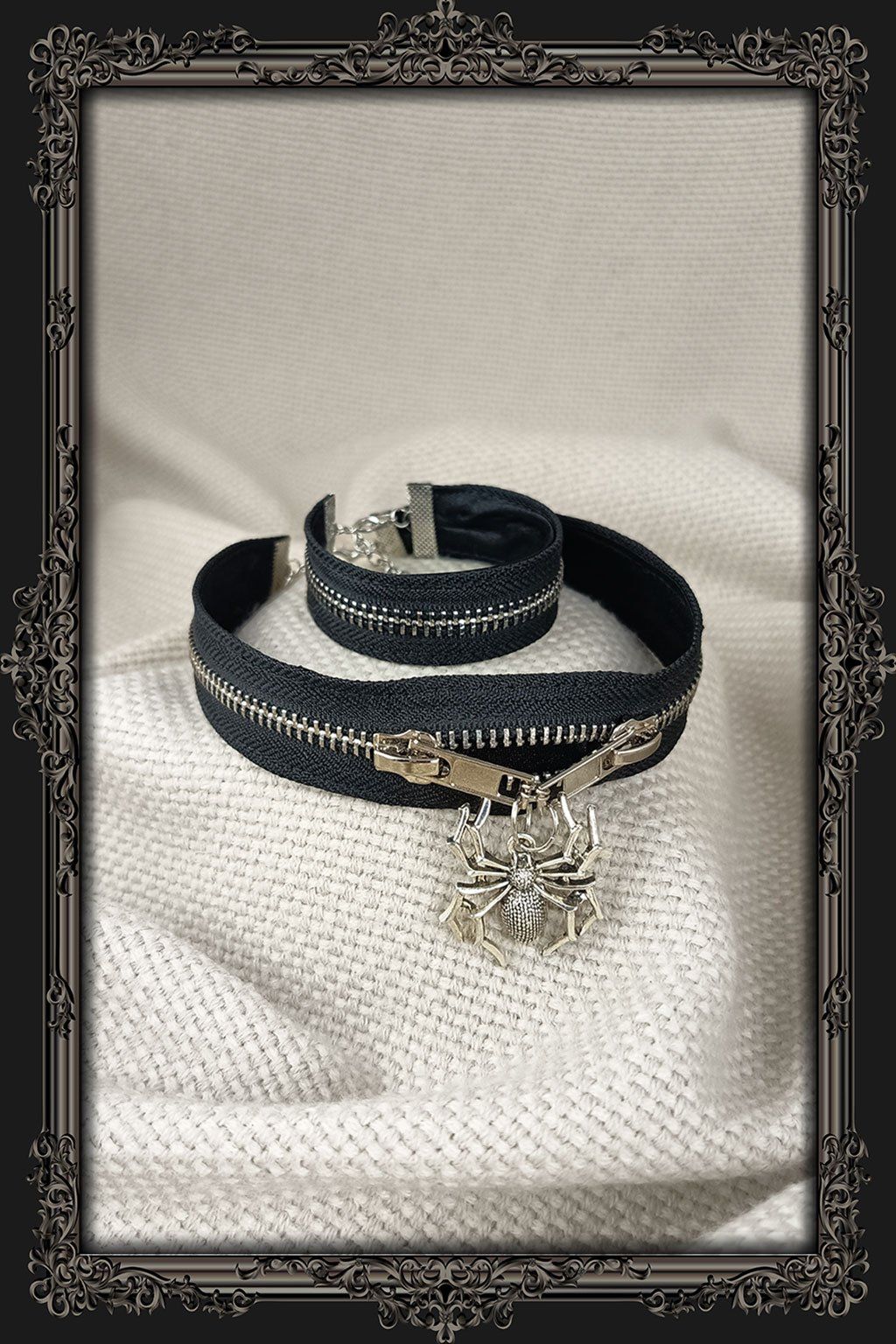 Ručně vyrobená souprava chokeru a náramku z černého kovového zipu je originální doplněk pro všechny, kdo mají rádi neotřelý styl a výrazné detaily. Černý zip v kombinaci se stříbrnými prvky vytváří osobitý vzhled, který zaujme na první pohled a skvěle doplní alternativní, moderní i odvážně laděné outfity.