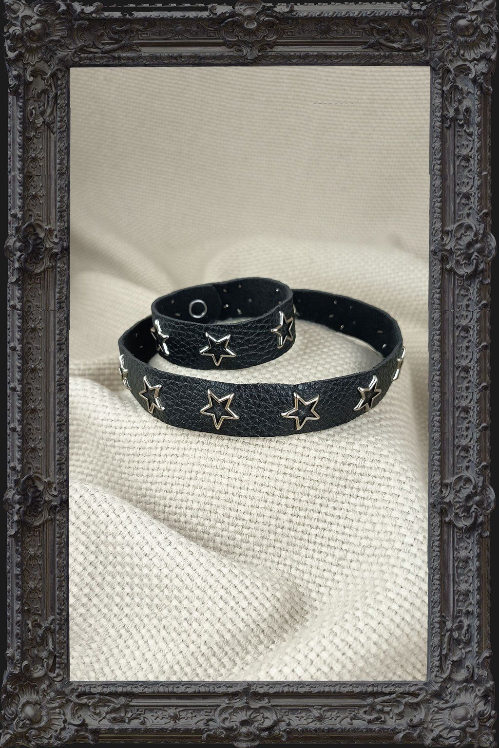 Choker a náramek spolu tvoří dokonale sladěný set, který se hodí pro alternativní styl, večerní outfit i jako originální doplněk pro každodenní nošení. Skvělá volba pro každého, kdo má rád odvážné detaily a osobitý vzhled.