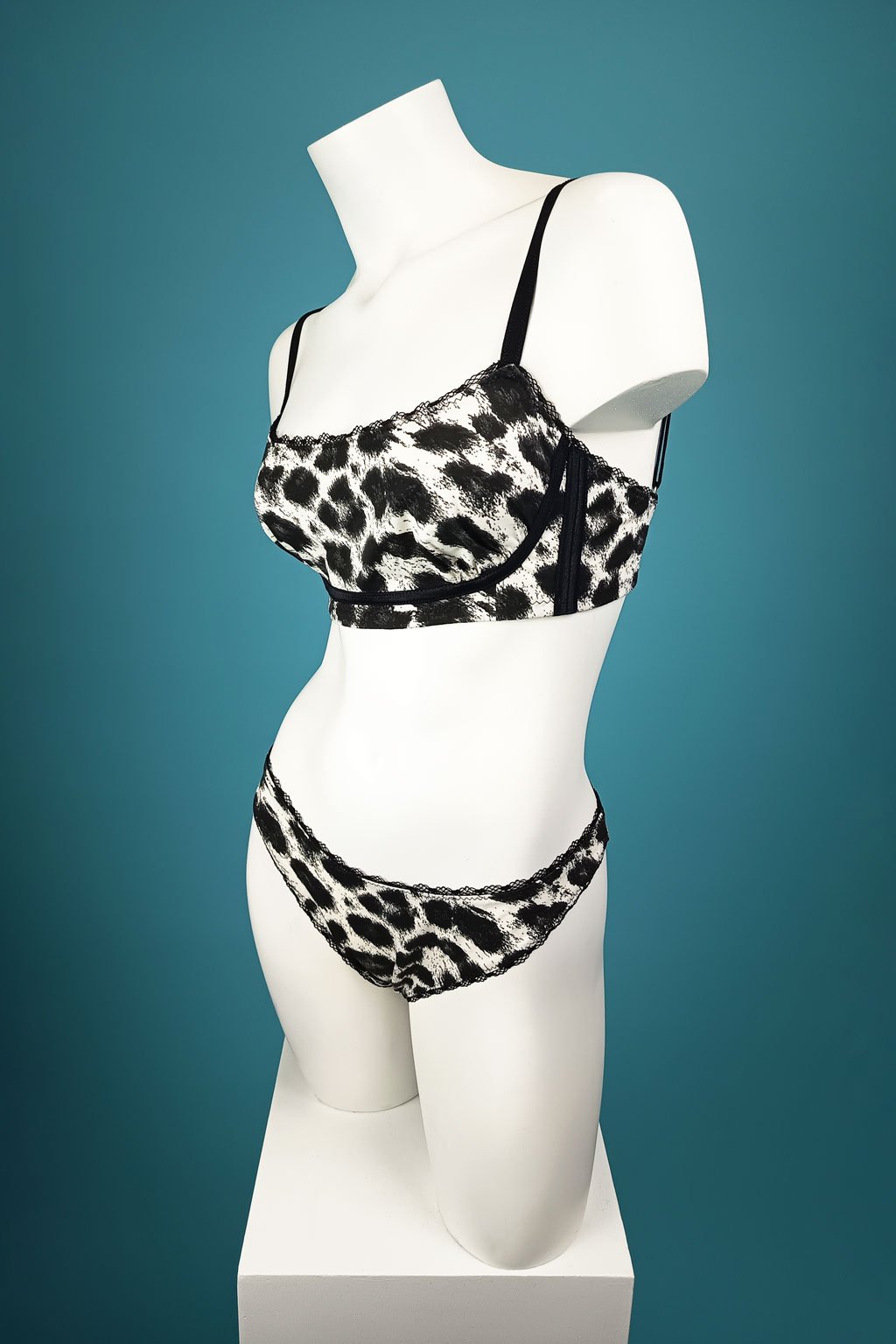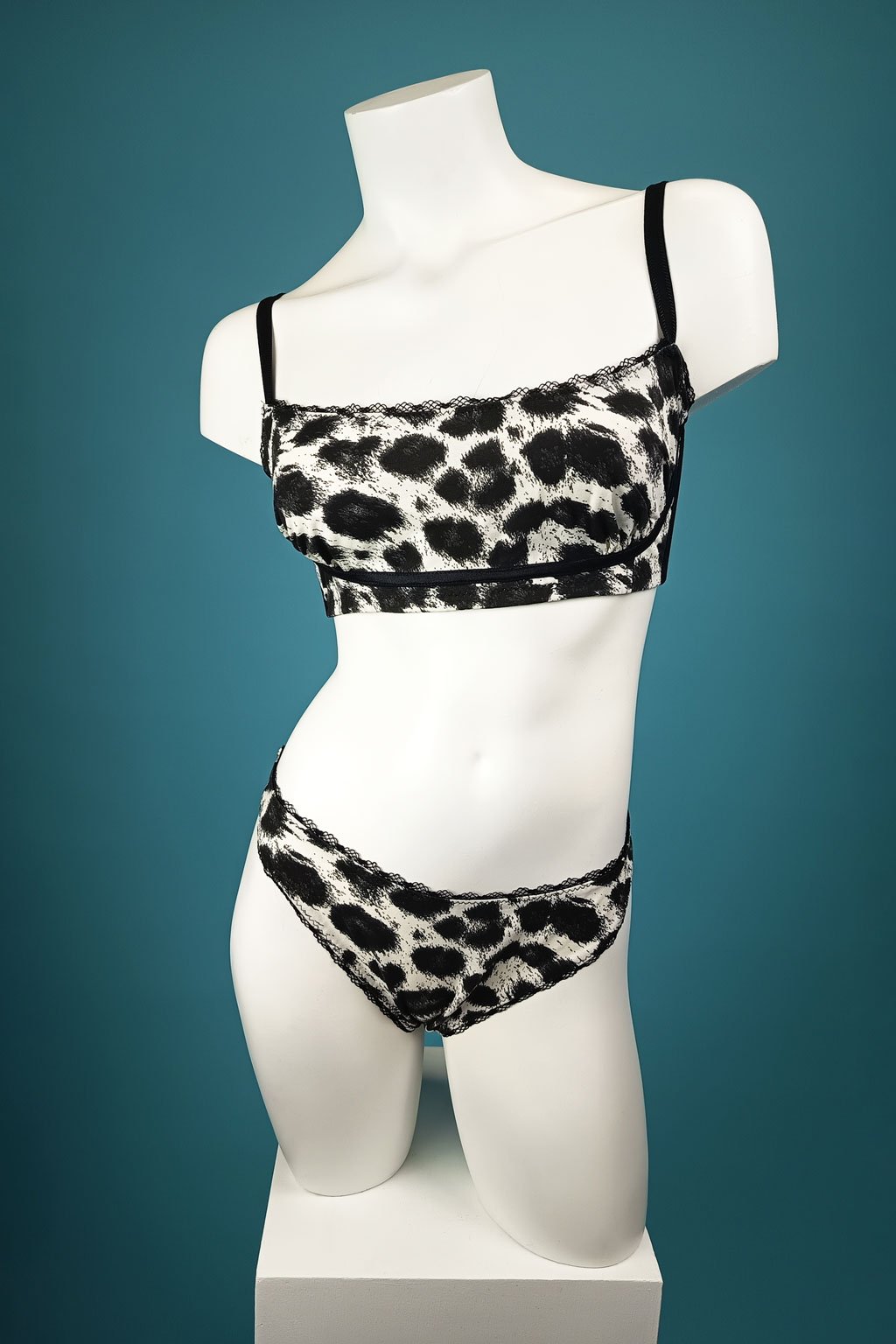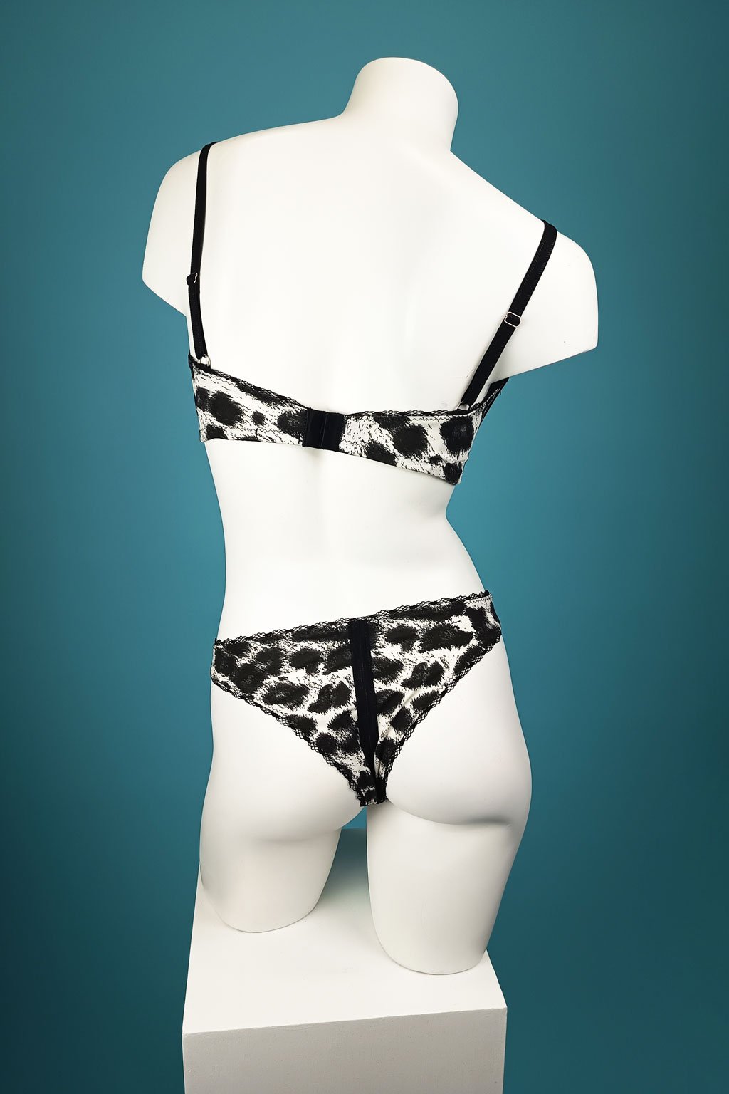 Tato stylová souprava spodního prádla přináší divoký a moderní vzhled díky leopardímu potisku na pevnějším bavlněném materiálu. Pohodlná braletka s nastavitelnými ramínky zajišťuje perfektní padnutí a podporu, zatímco kalhotky brazilky dodávají atraktivní a lichotivý střih. Precizní ruční práce zaručuje kvalitu a dlouhou životnost každého kousku. Ideální pro ženy, které chtějí spojit pohodlí s odvážným designem a cítit se sebevědomě každý den.
