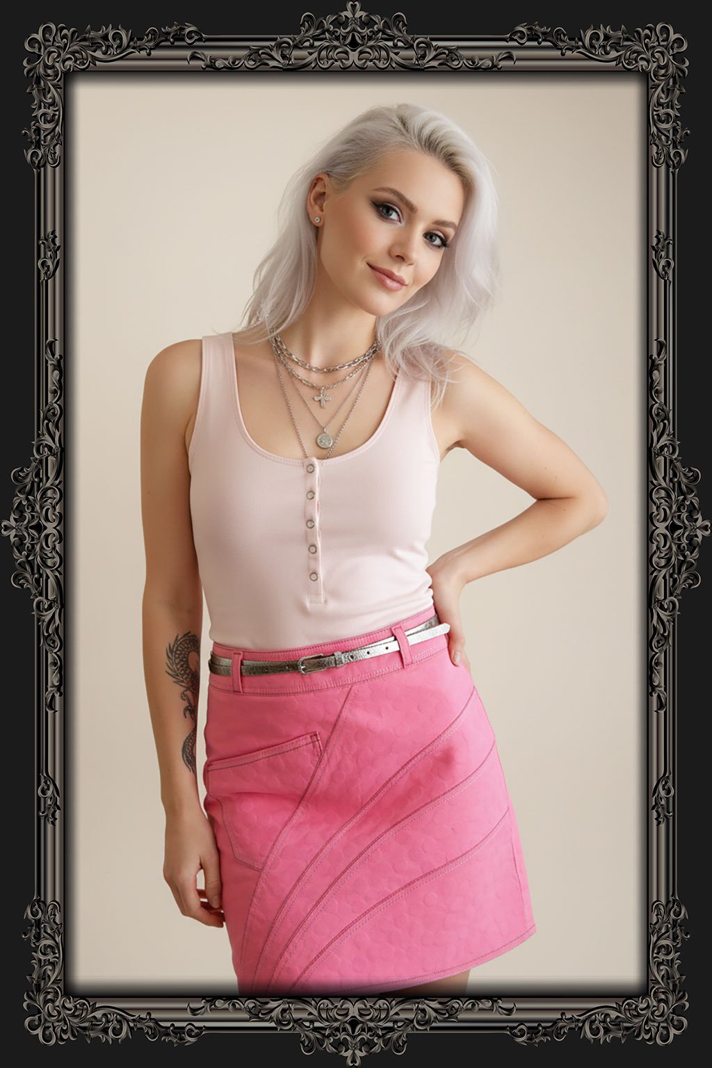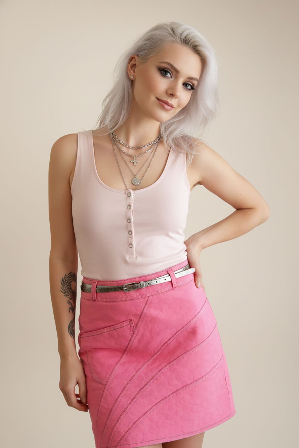 Růžová sukně střihu Grace ve velikosti 38. Sportovně elegantní střih bokové sukně s velmi zajímavým asymetrickým řešením. Sukně je vyrobená z mírně elastického mjateriálu, který je pohodlný a snadný n a údržbu.
