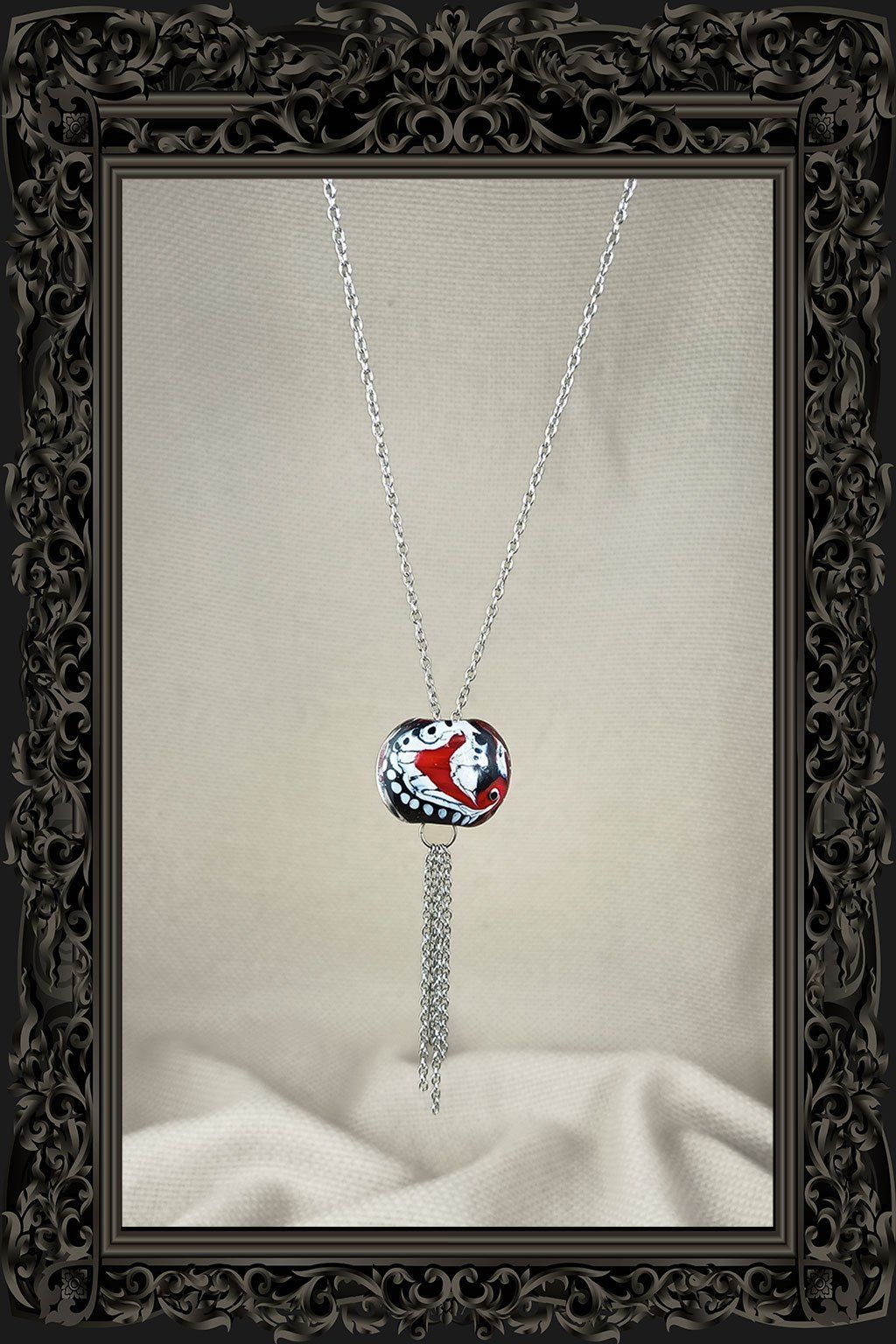 Ručně vyrobený velký skleněný korálek na dlouhém řetízku je originální šperk, který zaujme na první pohled svým výrazným vzhledem a jedinečným ručním zpracováním. Dominantní skleněný korálek působí elegantně i osobitě zároveň a díky delšímu řetízku krásně vynikne na svetru, halence i jednoduchých šatech.